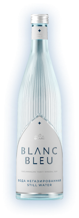 Blanc Bleu mineral water lies at a depth of over 1,400 meters. Originating in the high mountain glaciers of the Tien Shan and flowing through layers of sedimentary rocks, Blanc Bleu water undergoes a natural purification process.